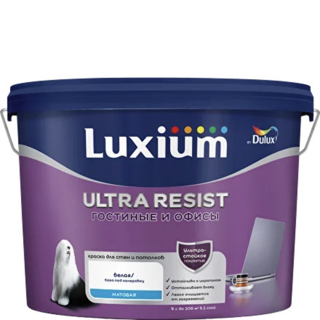 Краска интерьерная ультрастойкая матовая для стен и потолков Luxium (Dulux) Ultra Resist гостиные и офисы